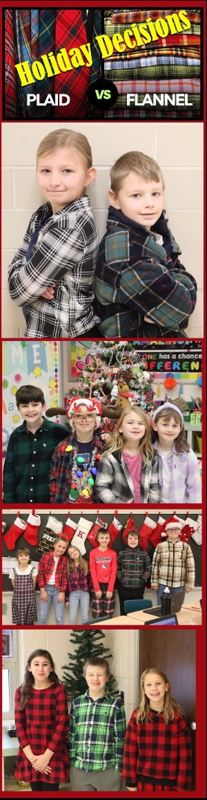 Dec. 18: Sing-along for students/ Pie in the Eye Assembly/ Wear flannel or plaid