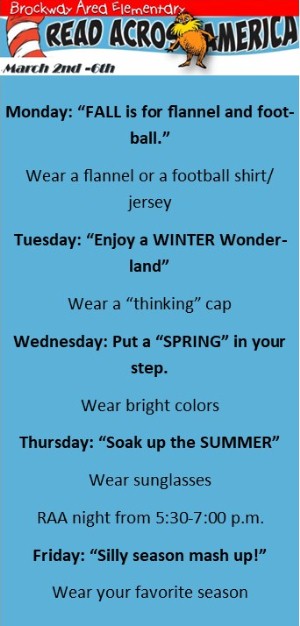 March 5:  Read Across America Family Night and Book Fair Night 5:30-7:00 PM (More info coming soon)