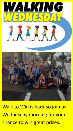 May 13: Last Walking Wednesday for the year/ Band and Chorus Concert (9 AM for school and 1:15 PM for the community at the high school auditorium)